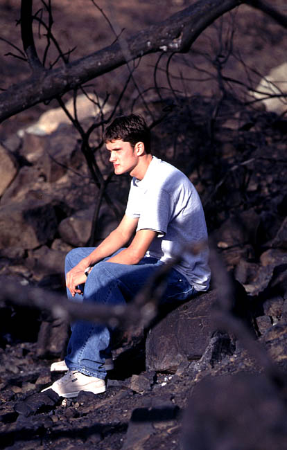 This shot actually has nothing to do with the fire itself, but it looks like like it should doesn't it. I shot this a few days after the fire as a portrait for this guys amatuer spotlight in a skateboard magazine.